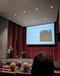 Next up was Joan Tague, President of Halifax River Audubon. She regaled the room with bird-related tales, covering everything from the history of Hawk Mountain, PA, to how to recognize raptors from below, to her favorite artwork of the Junior Duck Stamp Contest.